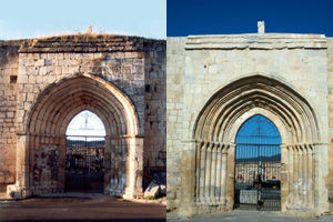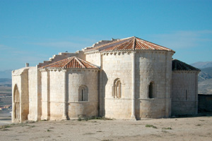 Edificada sobre una antigua mezquita se termina en el primer cuarto del siglo XIII por el arzobispo de Toledo D. Rodrigo Jiménez de Rada. La edificación conserva dos puertas abocinadas (lienzos de poniente y sur) y tres ábsides de planta semicircular cubiertos con bóveda de medio cañón ligeramente apuntada en un tramo recto y bóveda de cuarto de esfera. Destacan los capiteles que rematan las pilastras interiores y exteriores, así como los canes que bajo la cornisa culminan los ábsides. Al interior se observa su antigua configuración en tres naves. Hoy en día es dedicada a cementerio y está declarada bien de interés cultural en la categoría de monumento. Tras un largo proceso de deterioro en fábricas de paramentos y cubiertas, la antigua iglesia románica se encontraba en un estado de ruina inminente. Se procedió, en esta intervención dividida en tres fases, a la restauración de las fábricas interiores y exteriores, a la restauración de la cubierta del antiguo ábside y a la restauración de la portada principal de acceso. De esta manera se ha vuelto a poner en valor, no sólo turístico, un a construcción de carácter monumental que se erige como el único ejemplo de arquitectura religiosa románica en un perímetro de 70 km. en el entorno de Madrid.