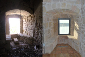 En la parte más alta de Cogolludo, importante villa de la Provincia de Guadalajara, se encuentra la iglesia parroquial de Santa María, monumento de extraordinario valor arquitectónico, construida posiblemente en la tercera década del siglo XVI. El proyecto de restauración de la torre y sacristía de la iglesia incluyó la sustitución de toda la cubierta de la torre, que se encontraba en un avanzado estado de deterioro, utilizando materiales idénticos a los existentes originalmente: madera en la estructura y pizarra en la cubrición. De igual manera se actuó en los paramentos de la torre, carpinterías y en el interior, eliminando añadidos y forjados deteriorados y construyendo unos nuevos de madera con acceso a través de una escalera de estructura ligera. En la sacristía de la iglesia se eliminaron las humedades existentes, se restauraron los paramentos y en el proceso de rehabilitación se hallaron pinturas murales que se incorporaron al proyecto, consolidándolas, limpiándolas y dejándolas a la vista.