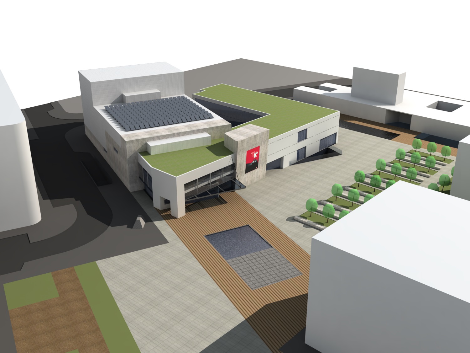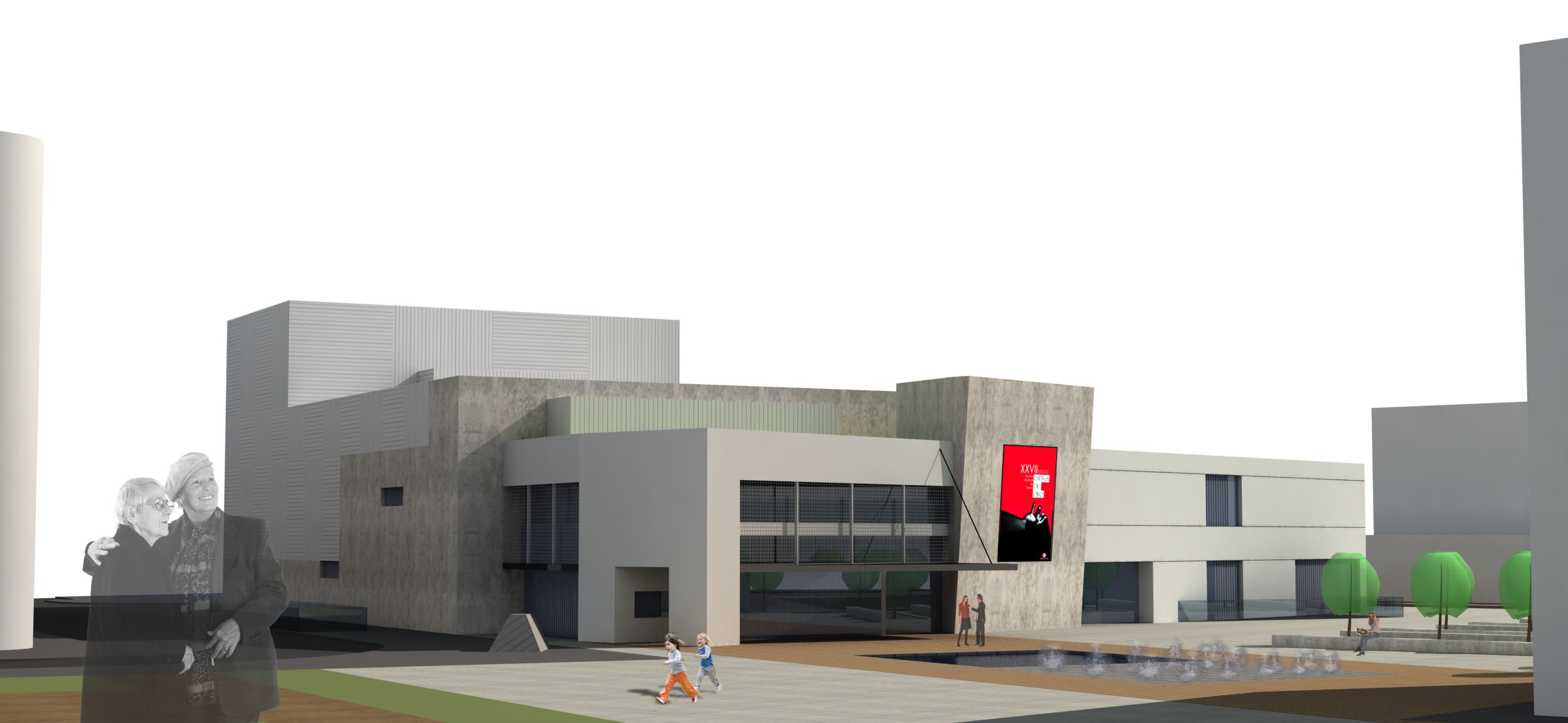 La propuesta que hacemos al programa anunciado por el ayuntamiento de Azuqueca de Henares, trata de separar y organizar los espacios en dos grandes conjuntos: por un lado el teatro-auditorio con su singular volumetría exterior y por otro, en forma de L, las zonas dedicadas a talleres, exposiciones y demás zonas creativas planteadas en el programa, que hemos intentado dialogue con el Centro de Ocio para personas mayores actualmente en construcción.